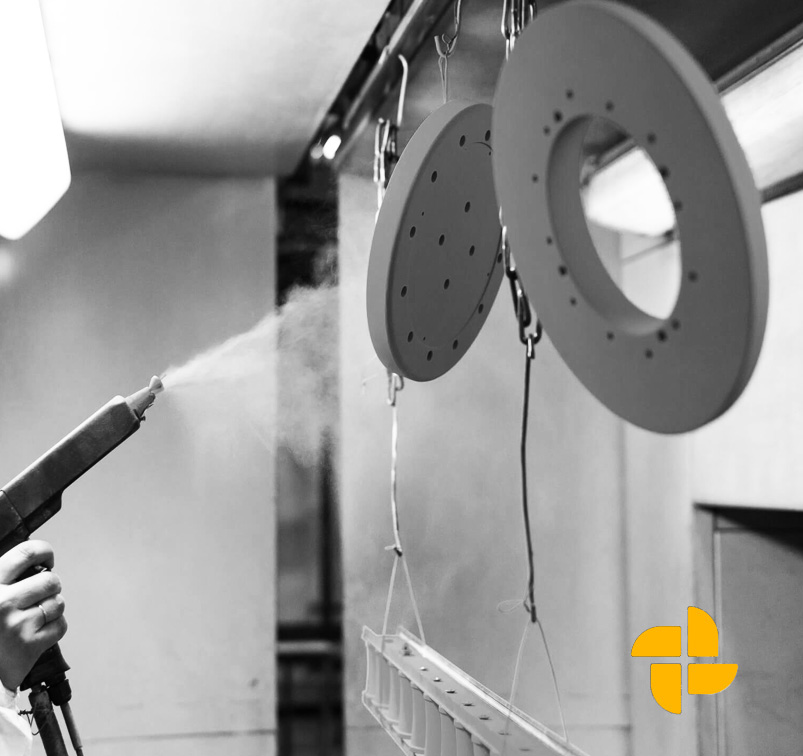 Wij bieden onze klanten de mogelijkheid om hun producten te laten poedercoaten volgens de EN-norm 15773. Voor buitentoepassingen hanteren we standaard een tweelaags poedercoatsysteem: eerst een epoxy poedercoatlaag, gevolgd door een gekleurde toplaag op basis van polyester. Dit systeem biedt uitstekende weerstand tegen weersinvloeden, met een hoge UV-bestendigheid en minder kans op krijten of vergelen in vergelijking met epoxyhars poedercoatings (EP). Epoxyhars coatings staan bekend om hun sterke chemische en diffusiebestendigheid en worden voornamelijk toegepast als primer.